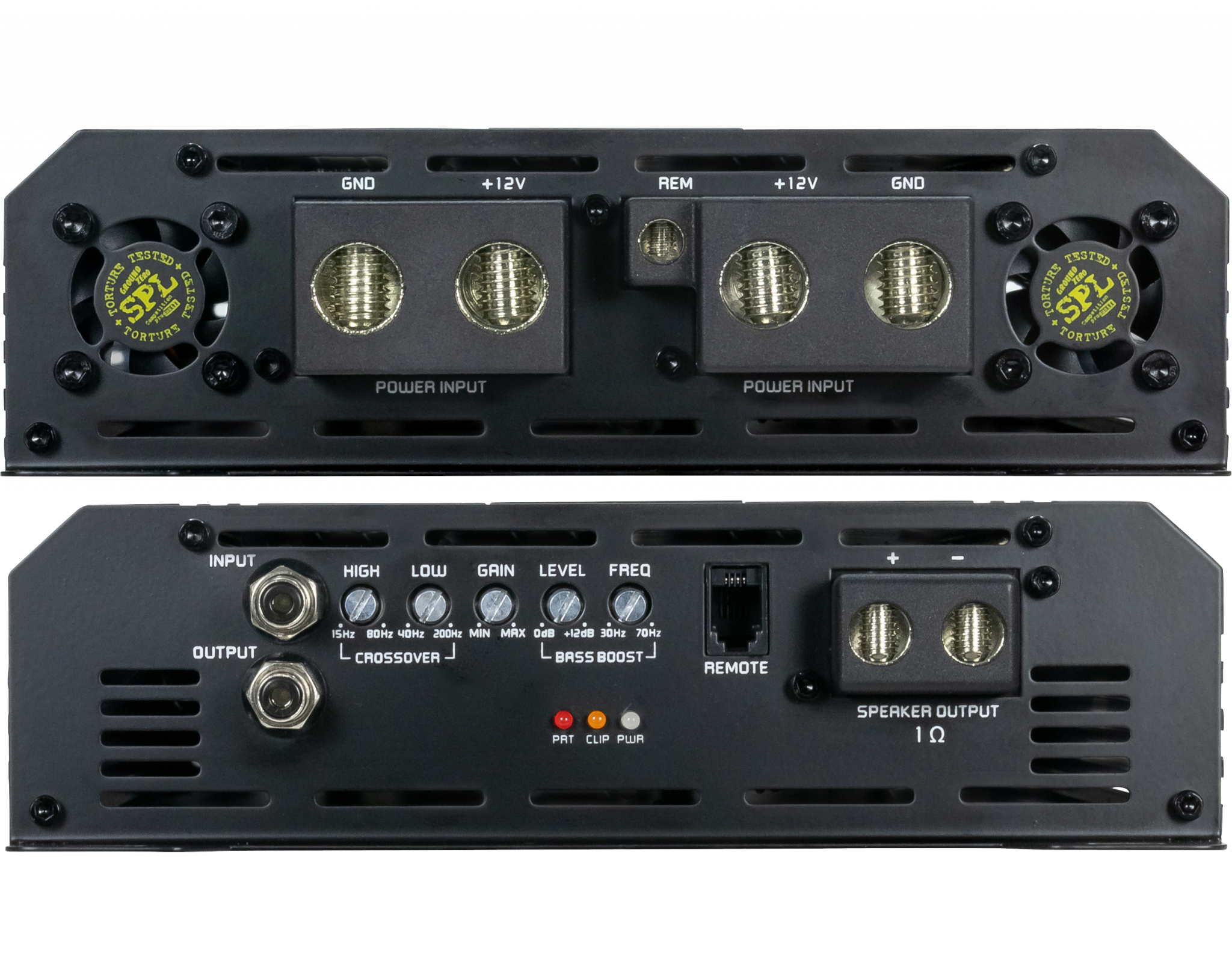 Amplificador de alta potencia SPL estable de 1 canal y 1 ohmio con circuito de clase D, crossover activo integrado y refuerzo de graves