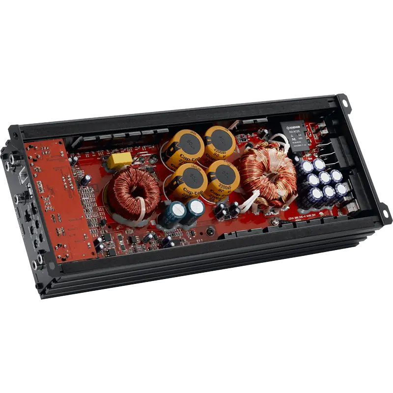 Amplificador de subwoofer de 1 canal con circuito de clase D de alta eficiencia, crossover activo integrado y dimensiones compactas